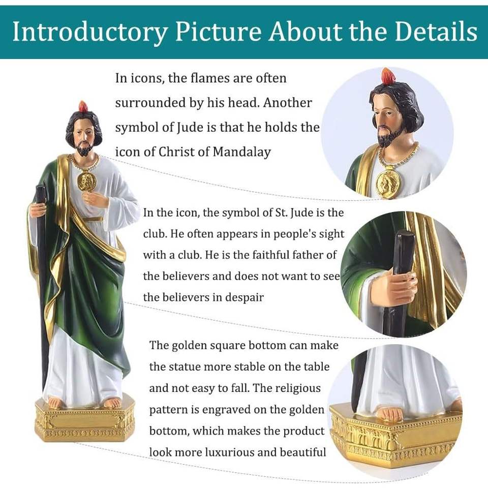 Saint Jude 8.5 Inch Bronze Statue Religious Resin Handmade Handpainted Colorful Gift for Church Custom San Judas Tadeo