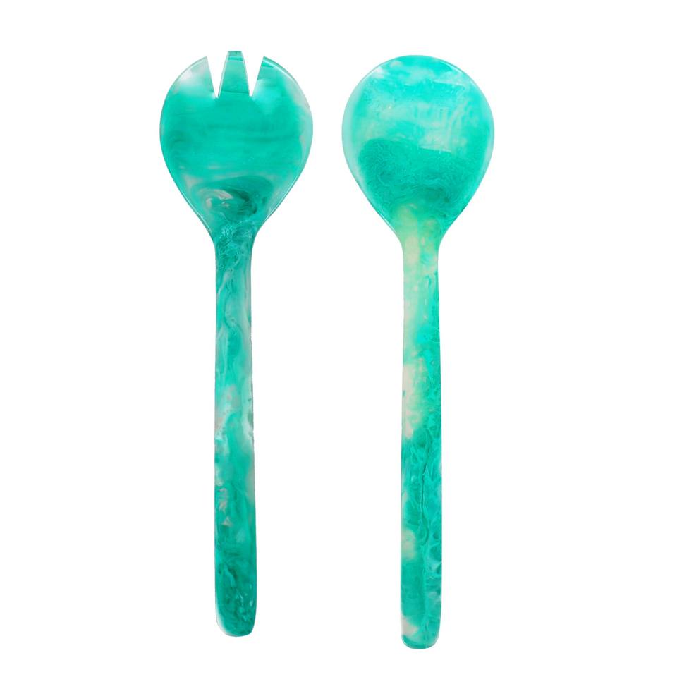 Salad Servers Resin Tongs with Long Handle and Cooking Spoon and Fork Set Green Bowl Set Made in India Wooden Salad Server Set