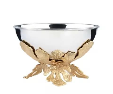 Salad Serving Bowl High Quality Stainless Steel Bowl With Floral Accent Luxury Home Decor Table Top Event Occasions