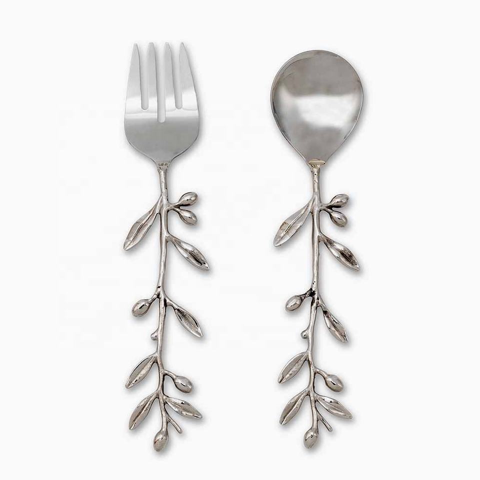 Salad Serving Set Luxurious Twig With Leaves Design Handle bar Set Finger Food Serving Set Salad Serving Spoon and Forks