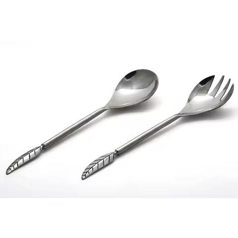 Salad Spoon Handle With Carve Patterns salad bar serving set Stainless Steel Silver Mirror Polished Wrought Handle