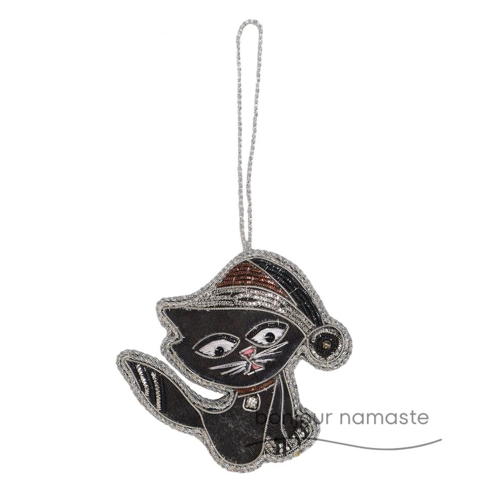 Salem Kitty Christmas Ornament | Handmade Black Cat Beaded Eco-Friendly Sustainable Modern Halloween & Holiday Decoration