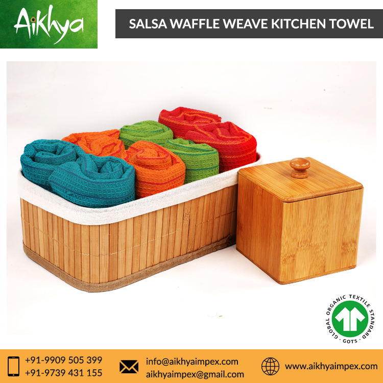 Trusted Supplier's Organic Cotton Salsa Waffle Weave Kitchen Towels Dish Cloths