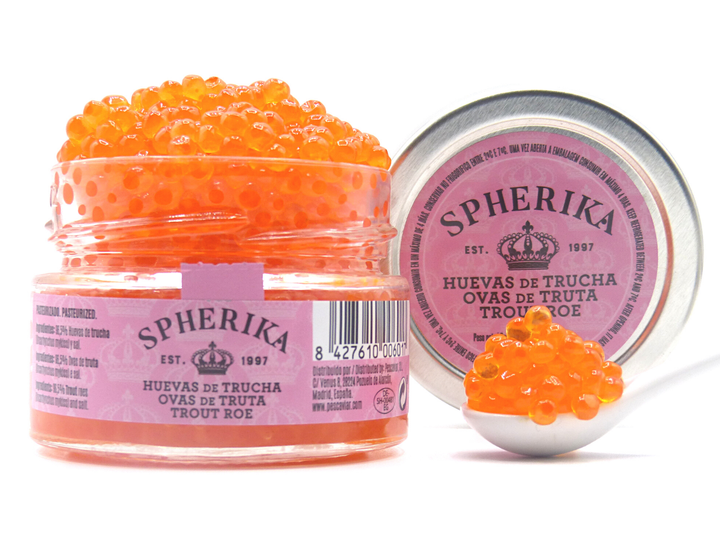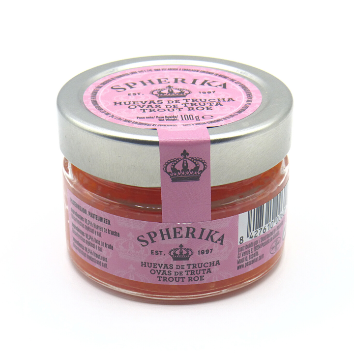 Salty Orange-Red Fish Eggs Trout Roe Made in Denmark Spherika 100G Jar Firm Seafood Flavor Trout Roe for Salads and Canapes