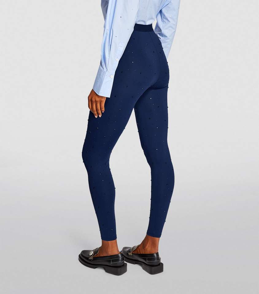Salva Impex Own Branded Winter Woolen Eco-Friendly Windproof Mid Waistband Regular Fit Deep Blue Color Rhinestone Formal Legging