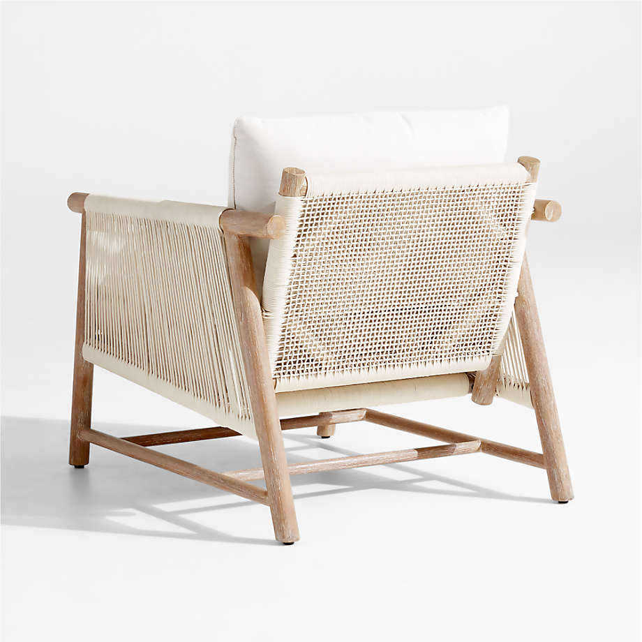 Description:outdoor lounge chair made from dolid teak wood frame and woven rope.