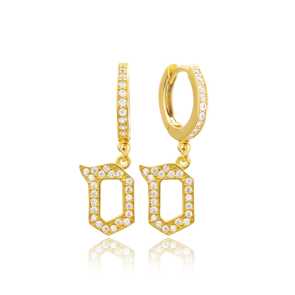 Samekh Letter Hebrew Alphabet Gold Plated 925 Sterling Silver Dangle Earrings Dainty Jewellery for Wedding & Party