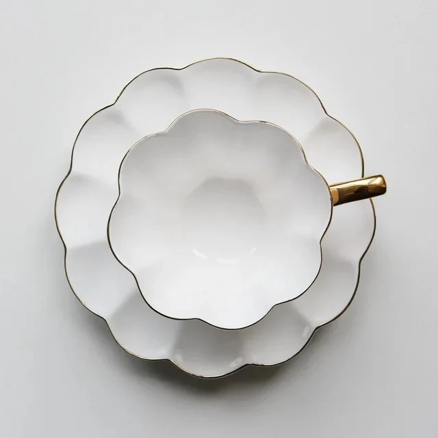 Sample Available Porcelain Cup and Saucer Set Gold Handgrip Edge Coffee Cup and Saucer New Bone China Espresso Cups Saucers