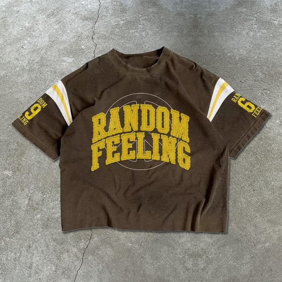 Sample Available Vintage Acid Wash Weight Cotton Drop Shoulder Boxy Oversized Street Wear Applique Front Sleeve Stripe T-Shirt