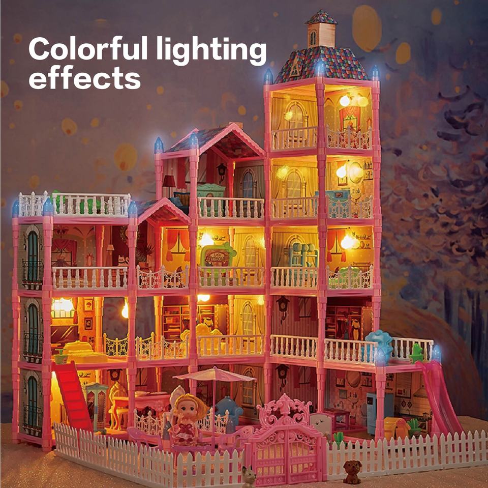 16 rooms, 3 balconies, 1 castle roof, 1 Barbie, 1 light string