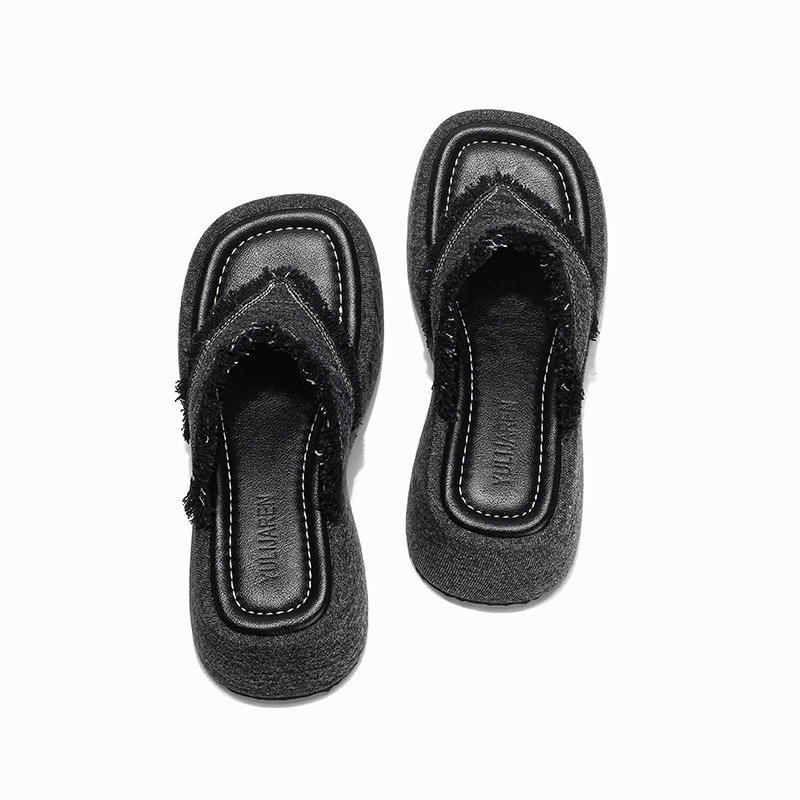 Sandales Compensees Wrinkle New Trending Denim Wedge Shoes 2023 Summer Women Open Toe Platform Sandals
