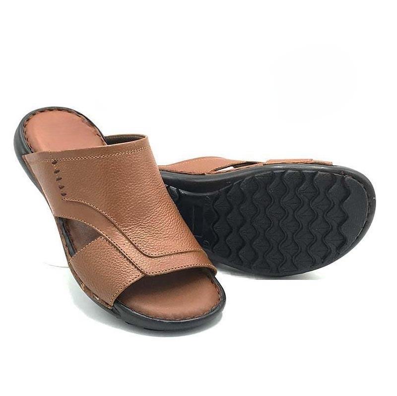 Sandals Slip on 2025 Sole Rubber Slides Men's Genuine Leather High-Quality Comfortable Casual Slippers for Men Summer Wholesale