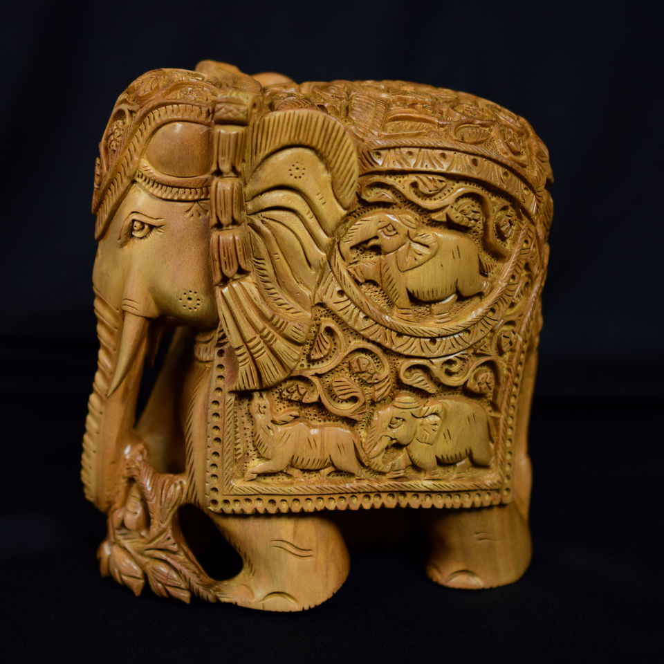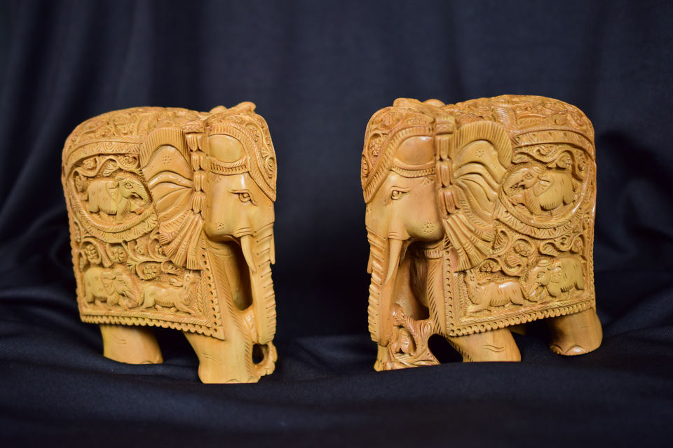 Sandalwood Hand Carved Elephant with Baby