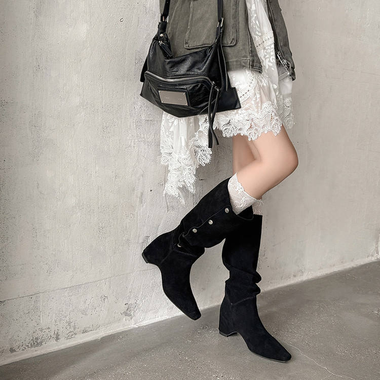 Sanded Genuine Leather Reversible Slip-on Slouchy Ankle Boots Retro Inner Height Flat Heel Rubber Sole Fashionable