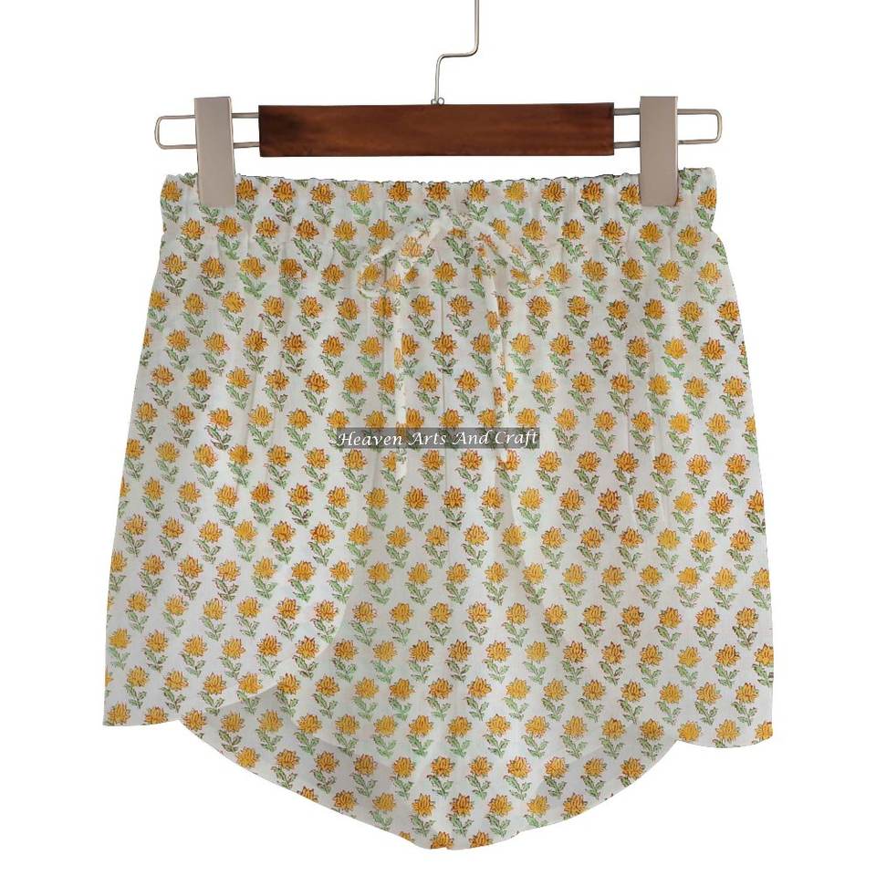 Sanganeri Print Cotton Wrap Shorts Women's Summer Loungewear Cotton Block Print Wrap Shorts Beach Girls Collection Baby Doll