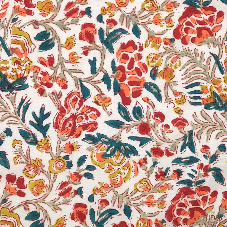 Sangria Red Ginger Orange Pine Green Floral Hand Block Printed 100% Cotton Napkin Reusable Napkins for Wedding Party Event Decor