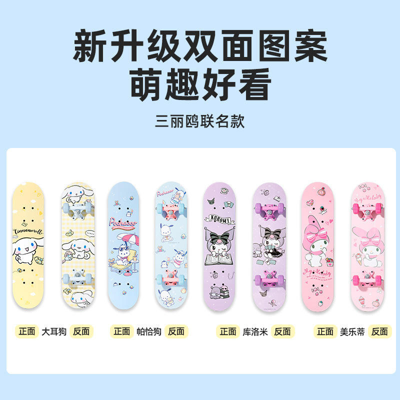 Sanrio Kids Skateboard Cruiser 3-12 Years Old Durable Four-Wheel Double Kickboard High Elastic Wheels Fashion Design