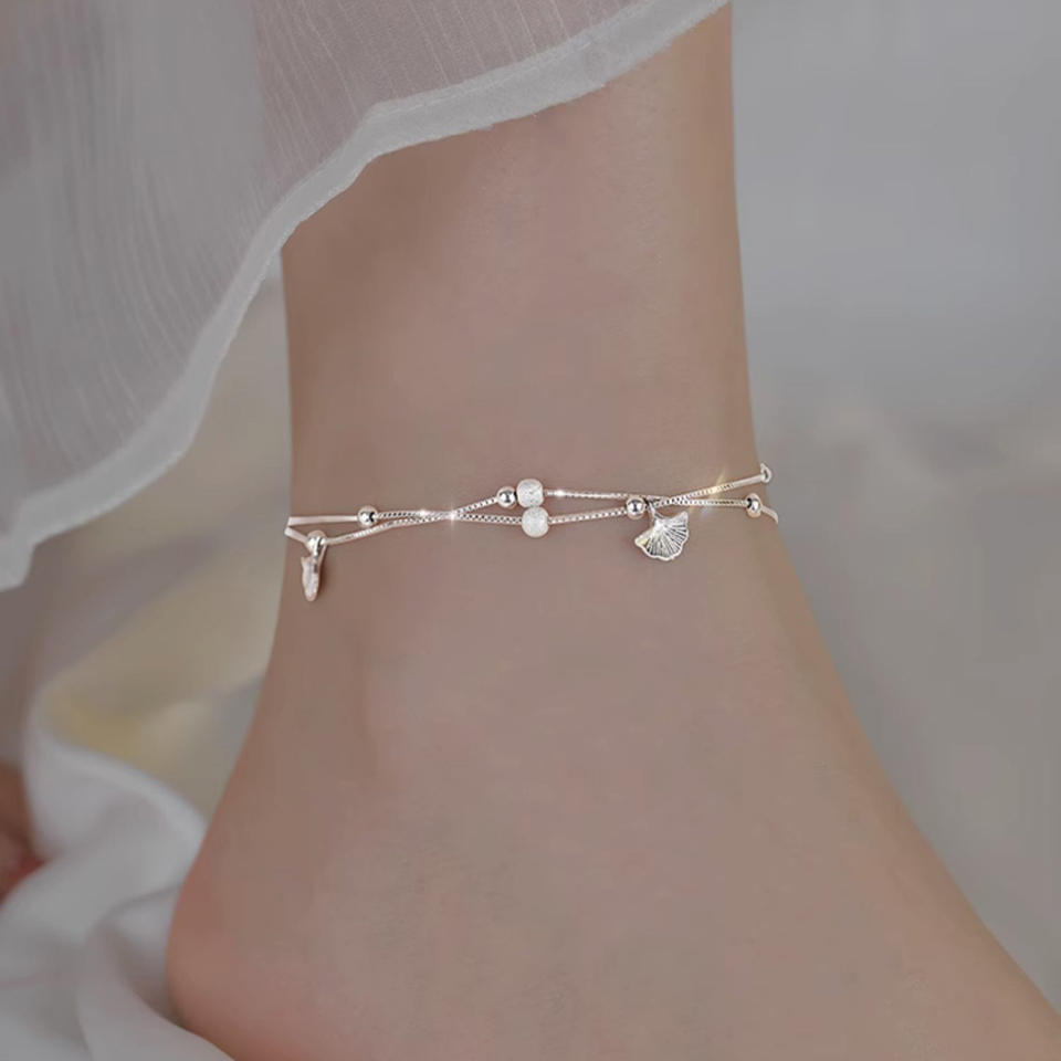 Sansheng Youxing Women's Anklet Light Luxury Double-Layer Apricot Leaf Copper Jewelry for Daily Wear