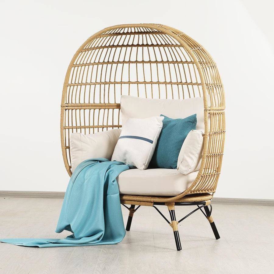 Sanstar patio Rattan Egg Chair, Large Indoor Outdoor Lounge Chair with Seat and Cushion for Patio, Backyard And Balcony.