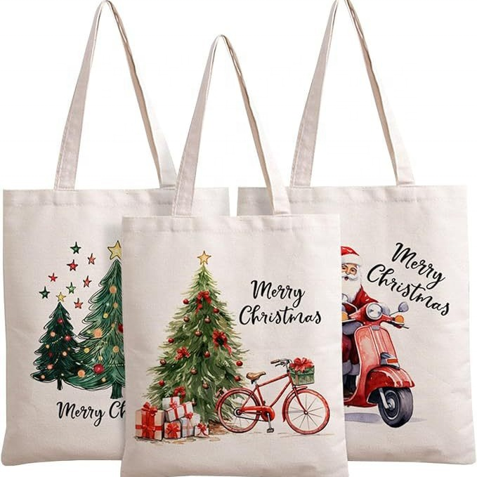 Santa Claus Canvas Bag Reusable Folding Style for New Year & Christmas Eve Gifts Cartoon Souvenir Canvas Handbag