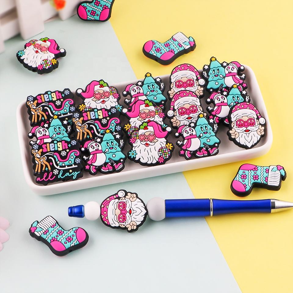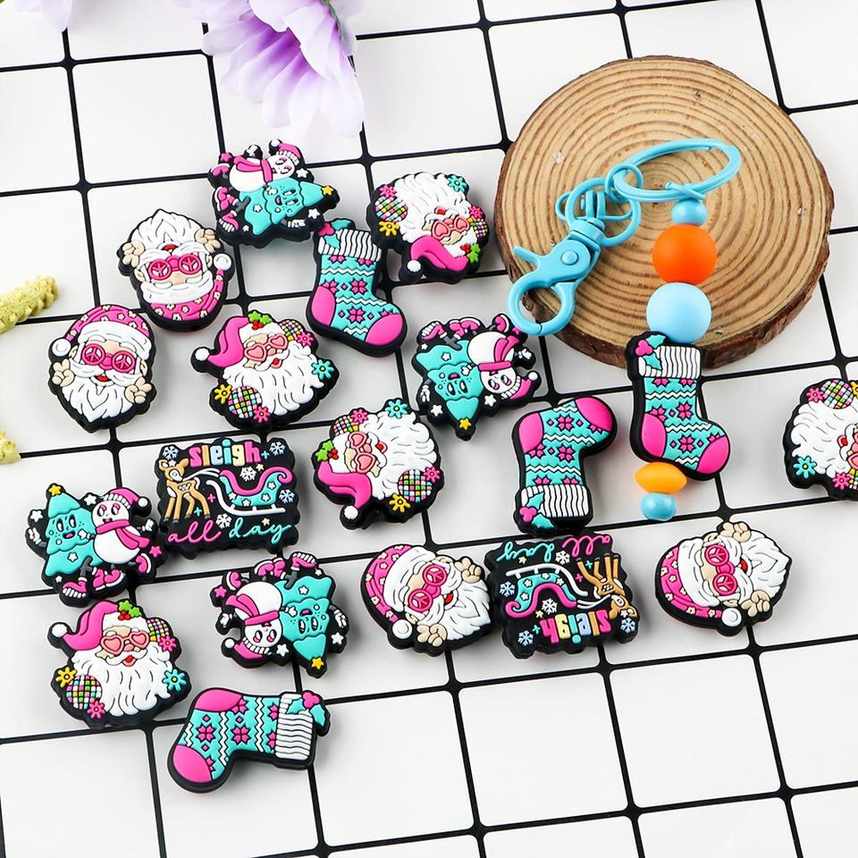 Santa Claus Christmas Tree Design Food Grade BPA Free Silicone Beads Jewelry Accessories Teething Focal Beads Loose Beads Any