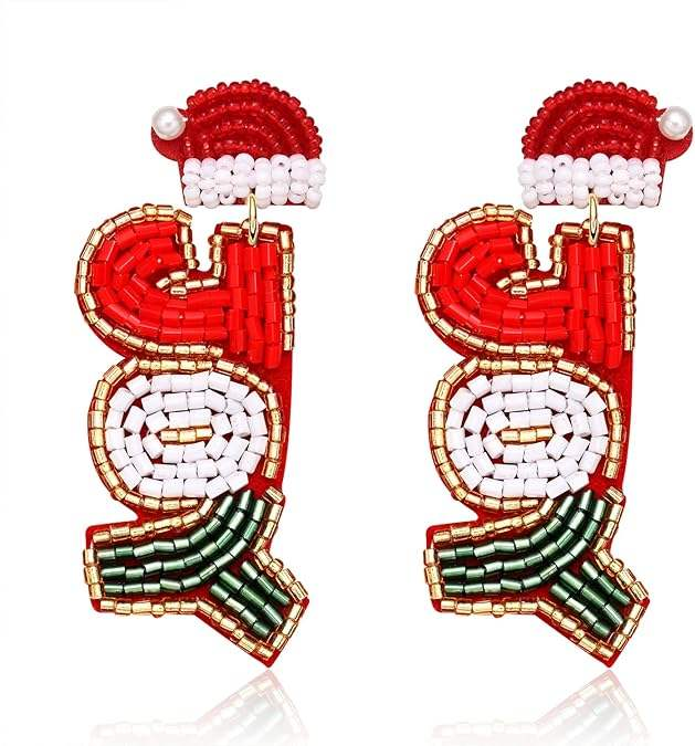 Santa handmade Stylish Beaded Embroidery Christmas Earrings Holiday Jewelry Festive Handcrafted Earrings Beadwork Accept Custom