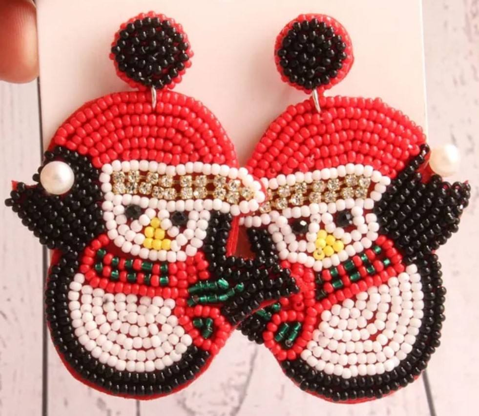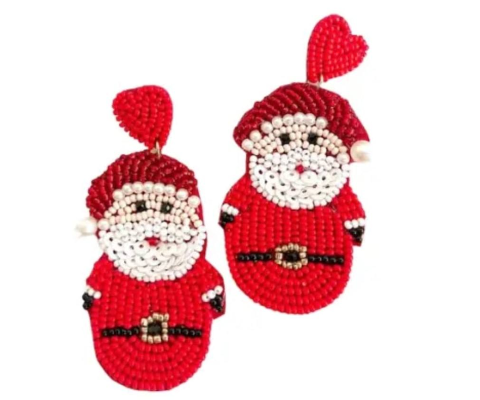 Santa Handmade Stylish Beaded Embroidery Christmas Drop Earrings Holiday Jewelry Festive Handcrafted Beadwork Women's Accept