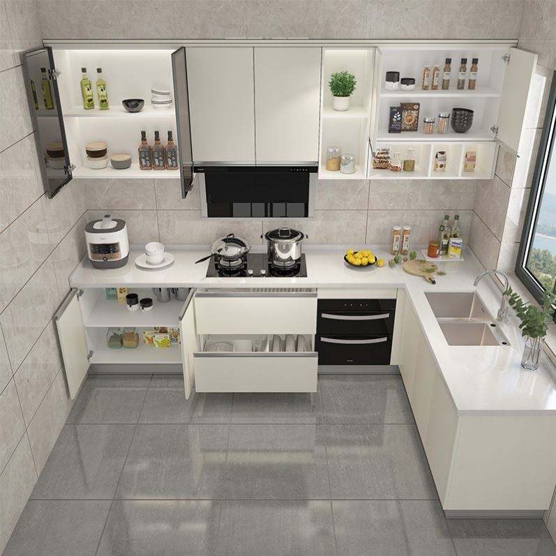 Santopova Bright & Organized Kitchen: Open Shelving, Integrated Appliances & Beige-Tone Cabinetry with Smart Storage