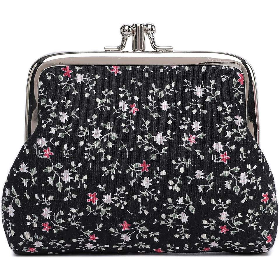 Sanxiner Vintage Real Leather Coin Purses Cute Floral Buckle Change Purse Wallets with Kiss-Lock Closure Zippered Daily Use