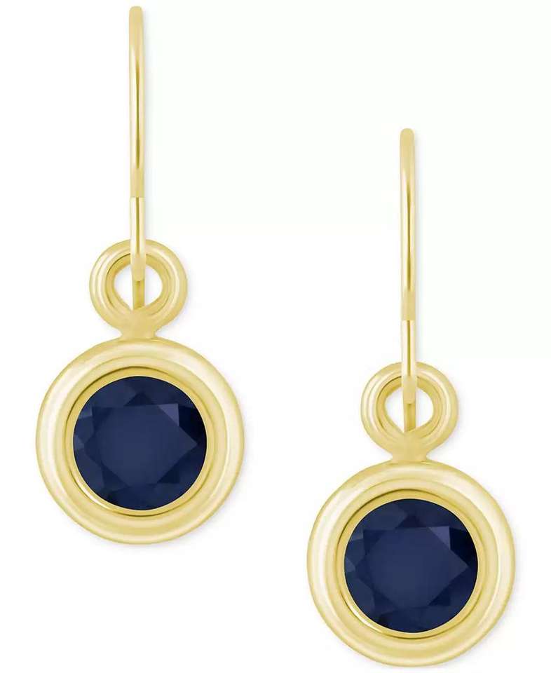 Sapphire Bezel Fish Hook Drop Earrings (3/4 ct. t.w.) in 10k Gold (Also Available in Ruby & Emerald) | Macy's