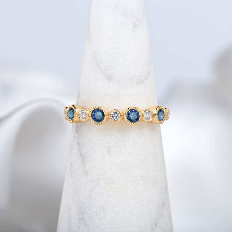Sapphire Eternity Ring Alternating Zircon Ring 925 Sterling Silver 14K Gold Plated Promise Ring Wedding Band Gift For Her