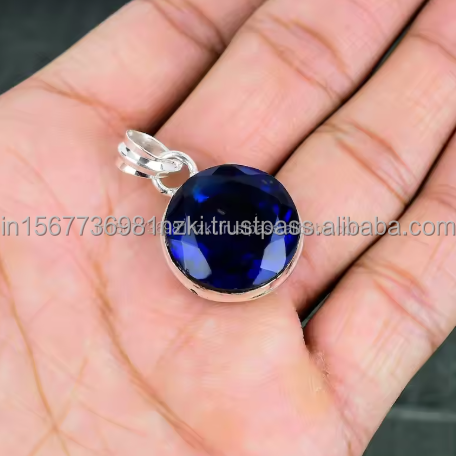 Sapphire Pendant Necklace 925 Sterling Silver September Birthstone Sapphire Pendant Blue Stone Fancy Necklace Birthday Gift