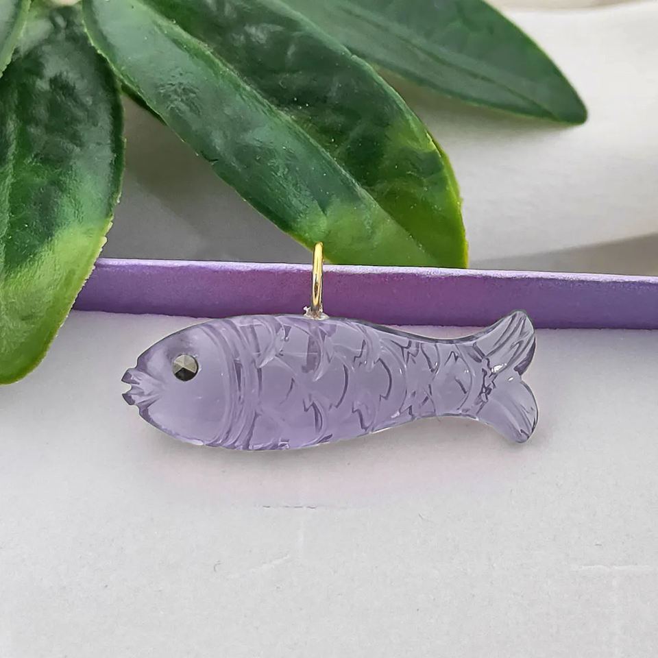 Sapphire Quartz 21x11mm Fish Carving Pendant Handmade Fish Carved 5mm Loop Gold Plated Sapphire Quartz Charms Bulk Suppliers