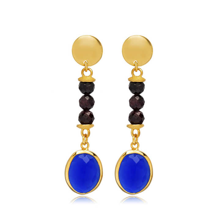 Sapphire Quartz Stone Black Beaded Hook Earring Turkish Wholesale 925 Sterling Silver Jewelry
