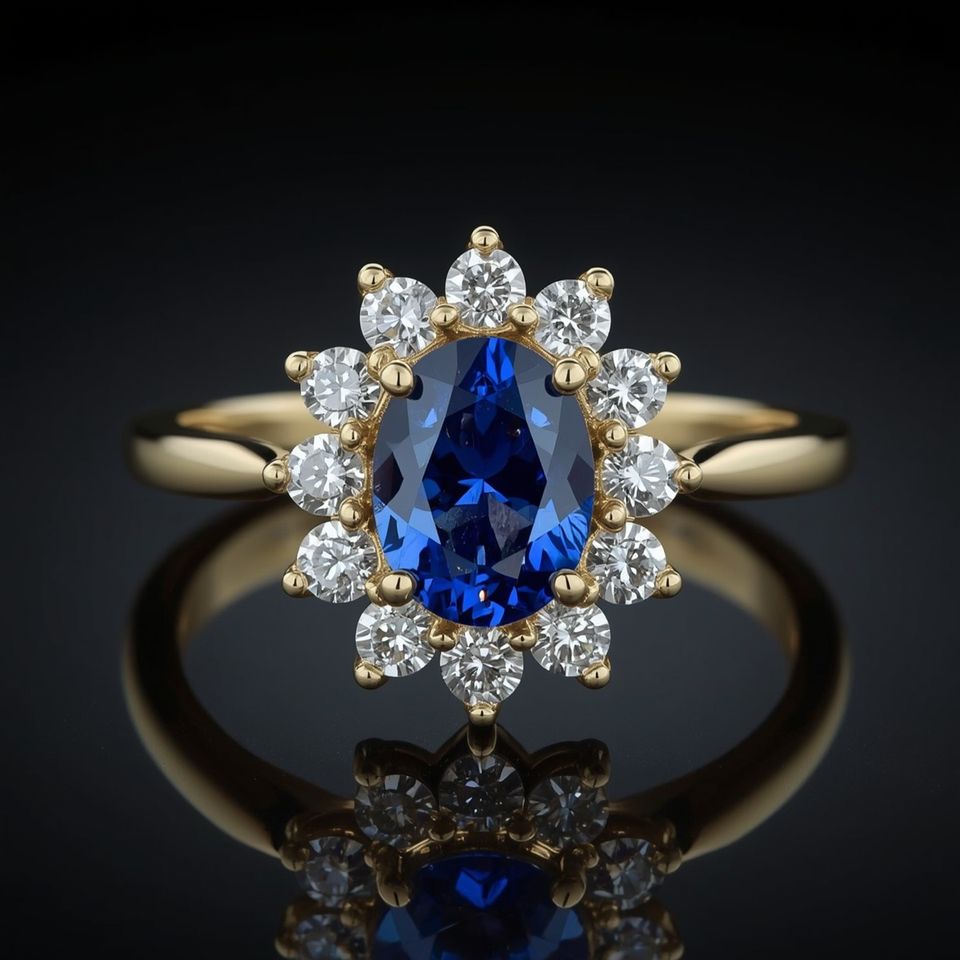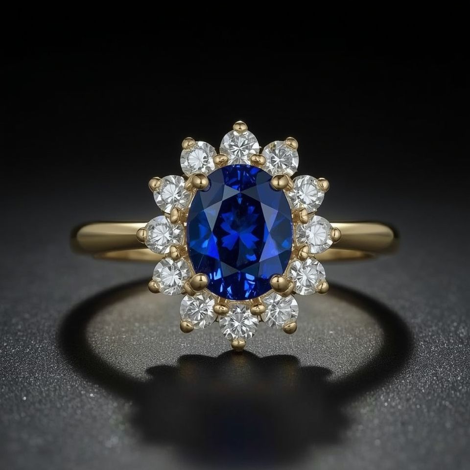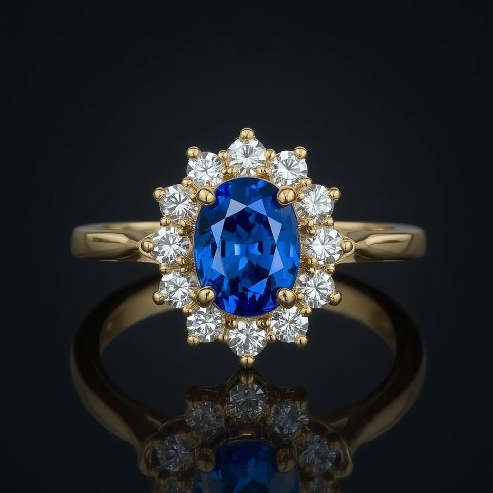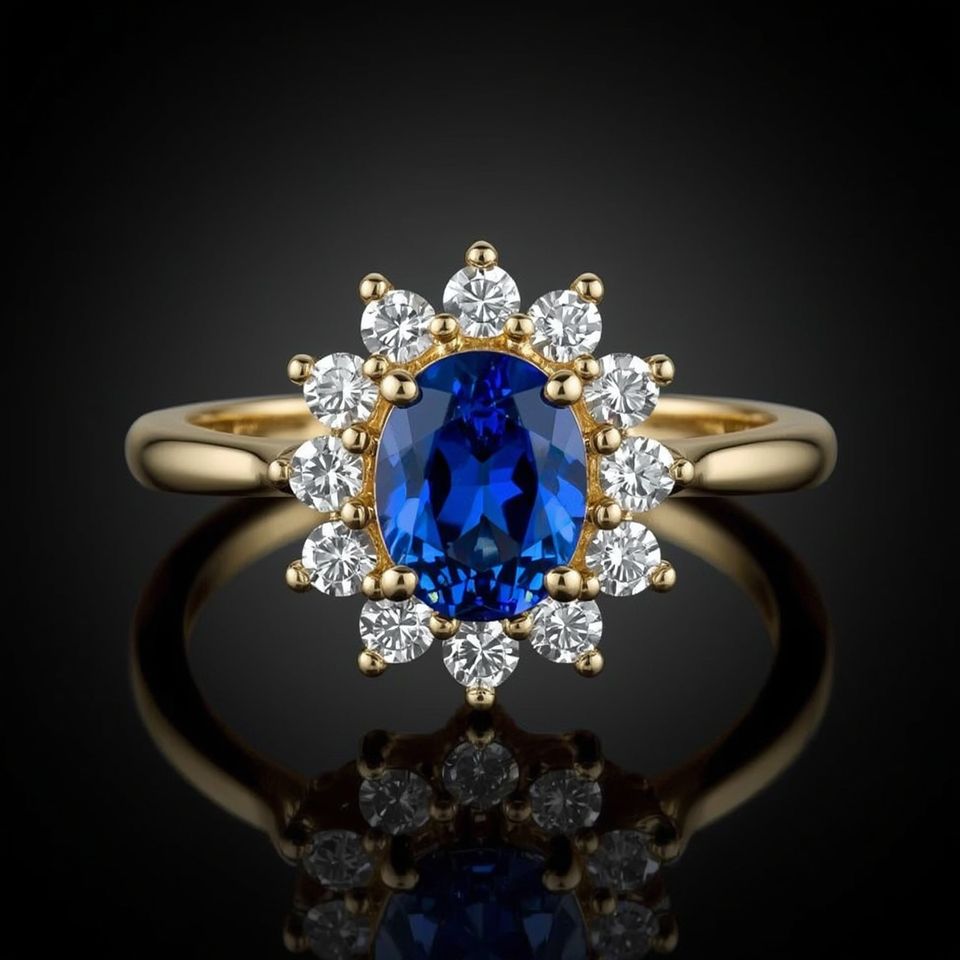 Women's Sapphire Diamond Halo Engagement Ring 18K Gold Luxury Wedding Gift with for Certification