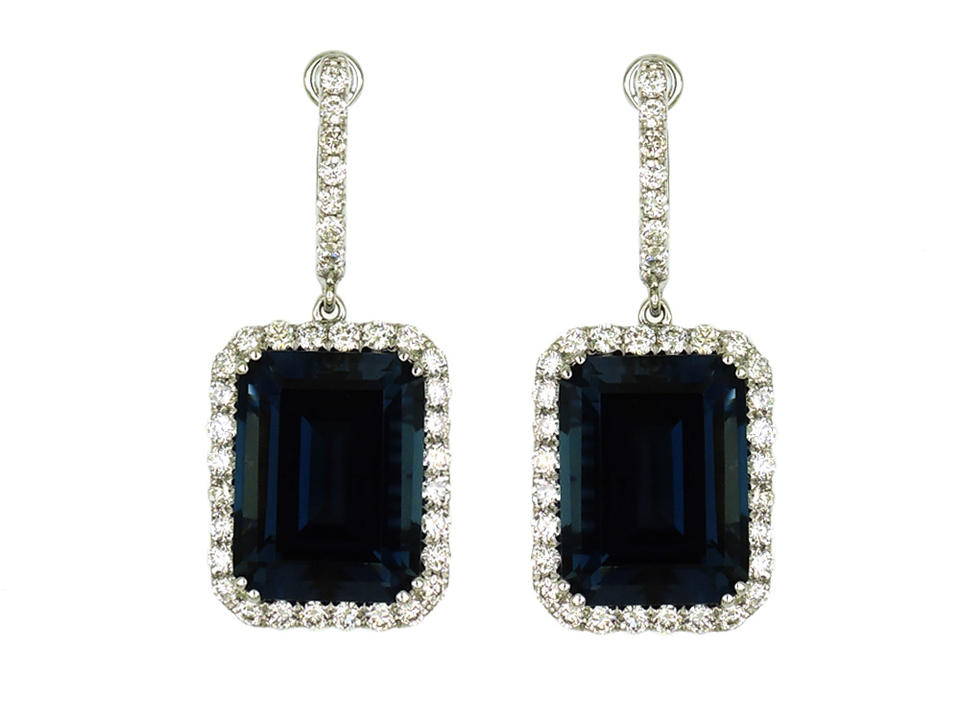 Sapphire Square Gemstone Diamond Halo Dangle Earrings 18K White Gold Luxury Jewelry Women Accessory