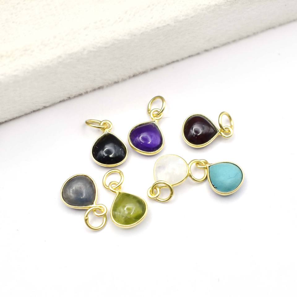 Sapphire Teardrop Pendant Necklace 8mm Bezel Set in Gold Plated Handmade Jewelry Gift for Her
