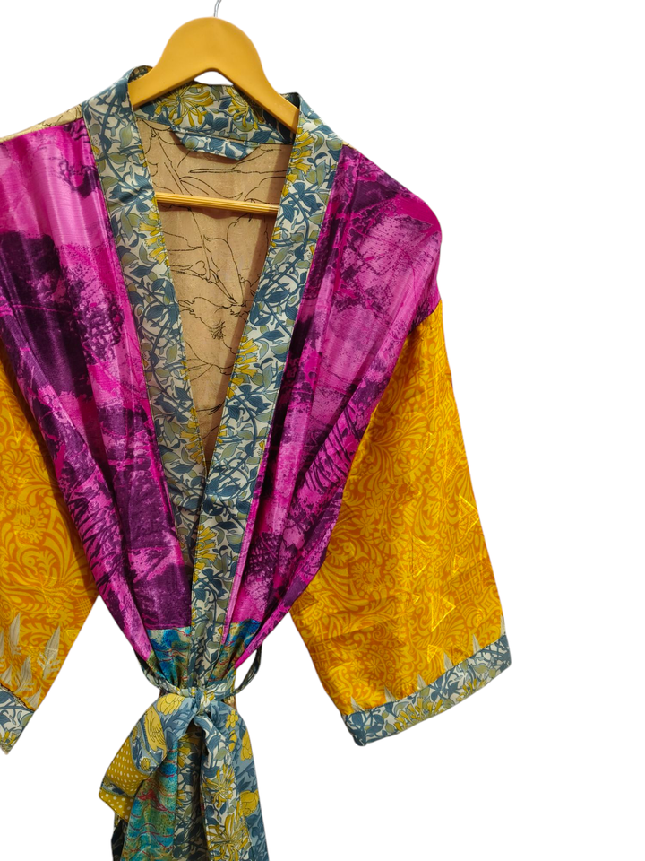 Sari Fabric Kimono Light Weight Gown Multi Color Robe Wrap Dress Woman's Summer Sari Silk Kimono Free Size Robe