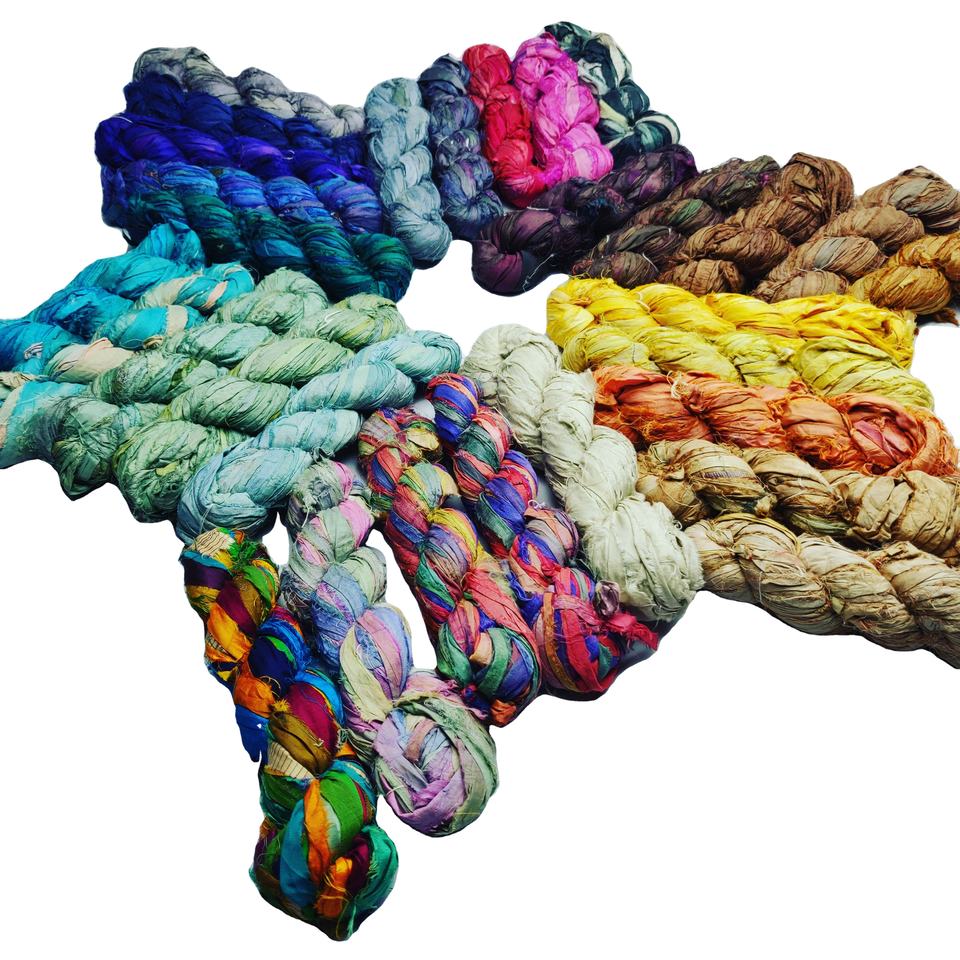 Sari Silk Ribbon Sock Colorful Elastic Yarn Rubber Covered Yarn Polyester Knitting Material Dyed for Embroidery Originating