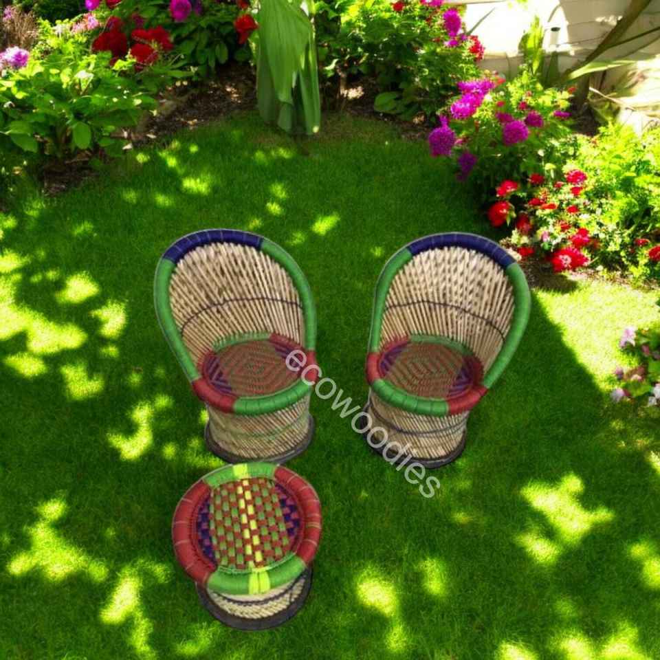 Product name:Set of 2 Bamboo Chair and Stool Patio Garden