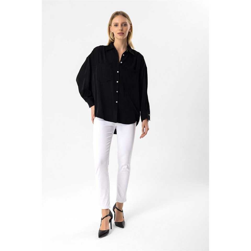Satin Casual Oversize Blouse Ladies Loose Fit Crew Neck Cap Sleeve Chiffon Lace Decoration Autumn Spring Solid