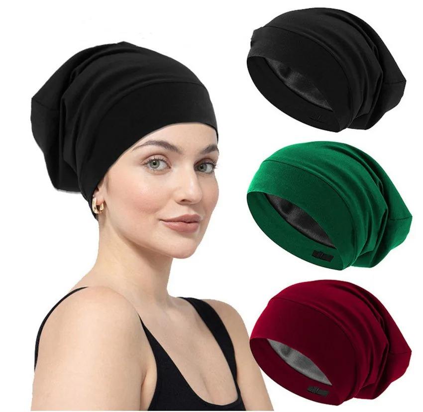 Satin Lined Hair Bonnet Hat for Women Men Bamboo Cotton Elastic Night Sleeping Caps Silk Skullies Beanies Cap Baggy Hat Headwrap