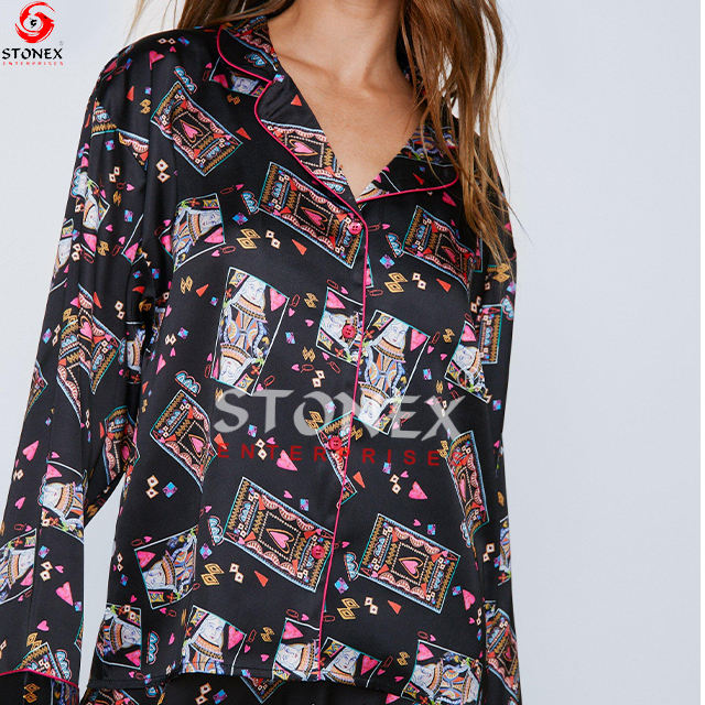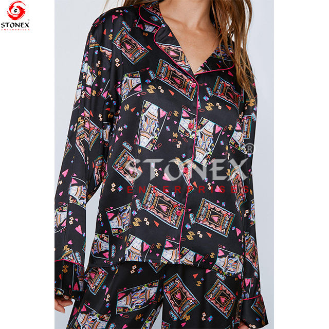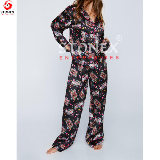 Satin Queen of Hearts Oversized Pyjama Trousers Set Best Manufacturer From Pakistan Women Sleep Wear's