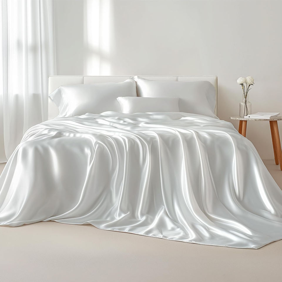 Satin Silk Bed Sheet Set 1800 Microfiber Extra Soft and Smooth Black with Silky Finish Woven Technique
