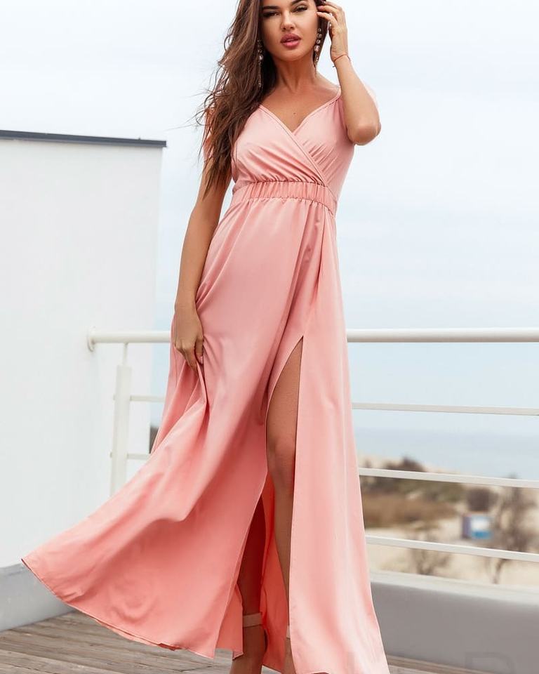 Satin Slit Solid Elegant Women Casual Party Club Prom Evening Clothes Night Club Maxi Dress With Split Backless Maxi Dress