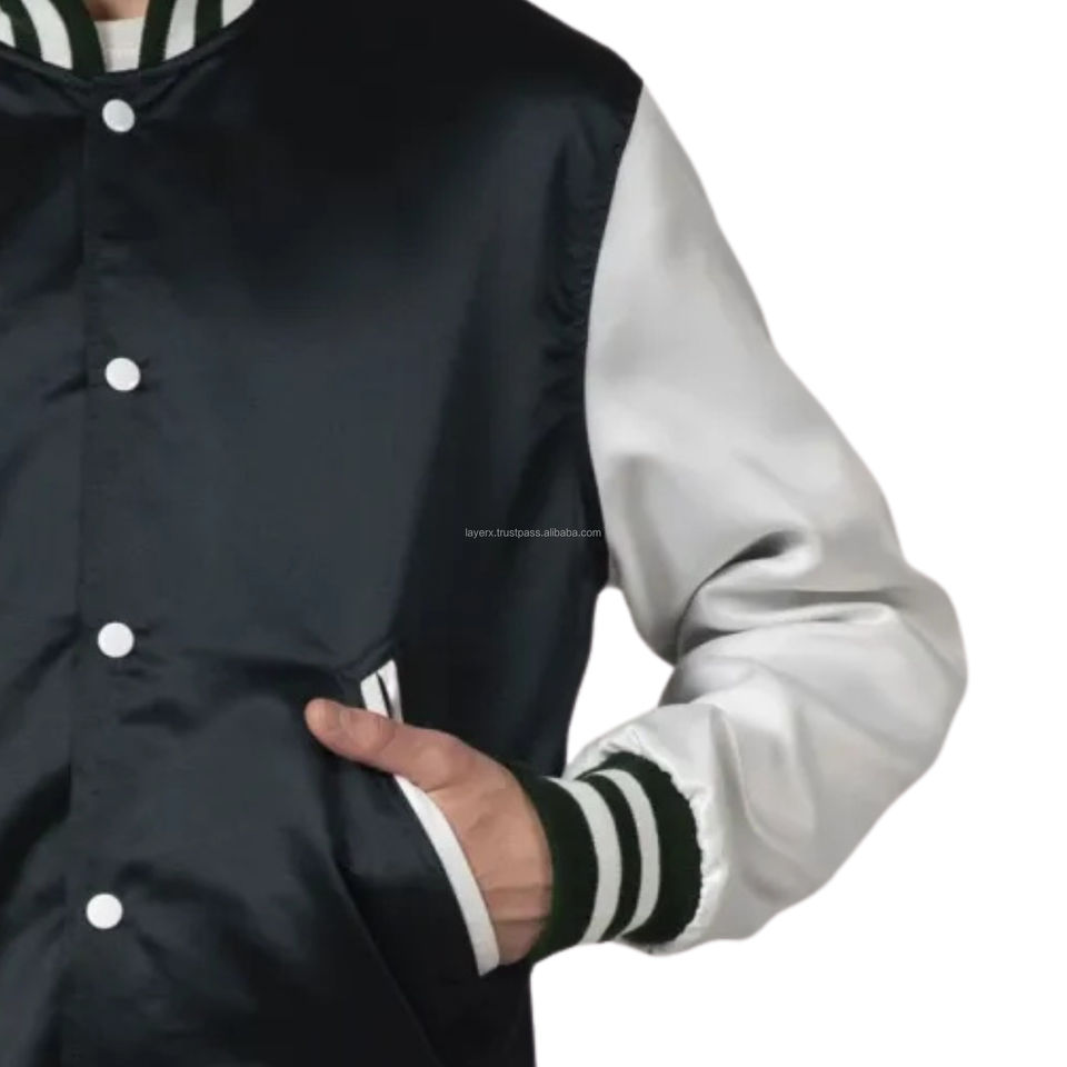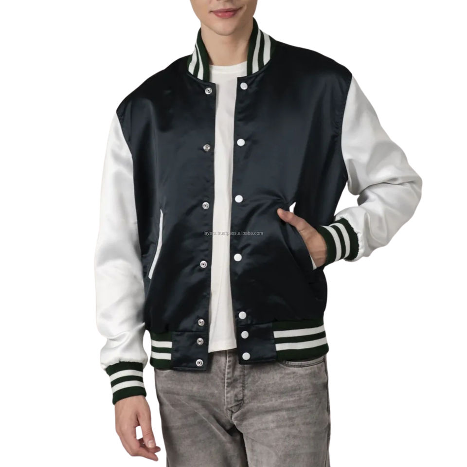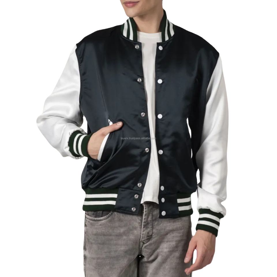 Satin Varsity Jacket Unisex Glossy Silky Fabric Lightweight Thin Patchwork Breathable Eco-Friendly Vintage American Retro Team