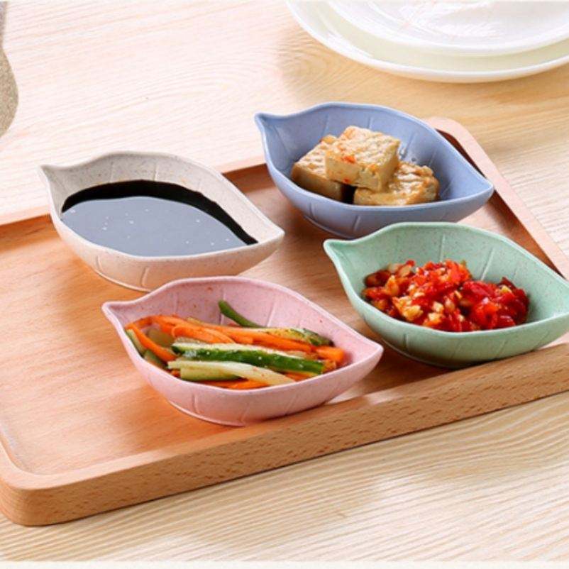 Sauce Dishes Wheat Straw Leaves Shape Mini Appetizer Plates for Vinegar Soy Sauce Seasoning