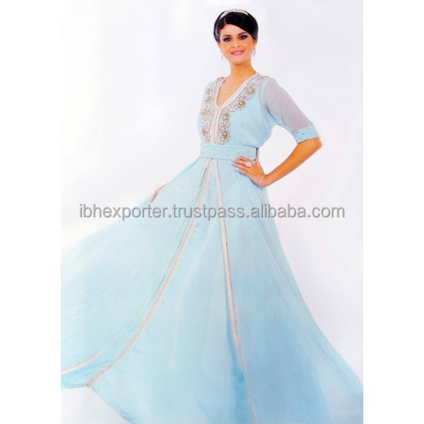 Saudi Arabian Women Wedding Dress Kaftan Baby Blue Colour With Lace and Stone Work on Top