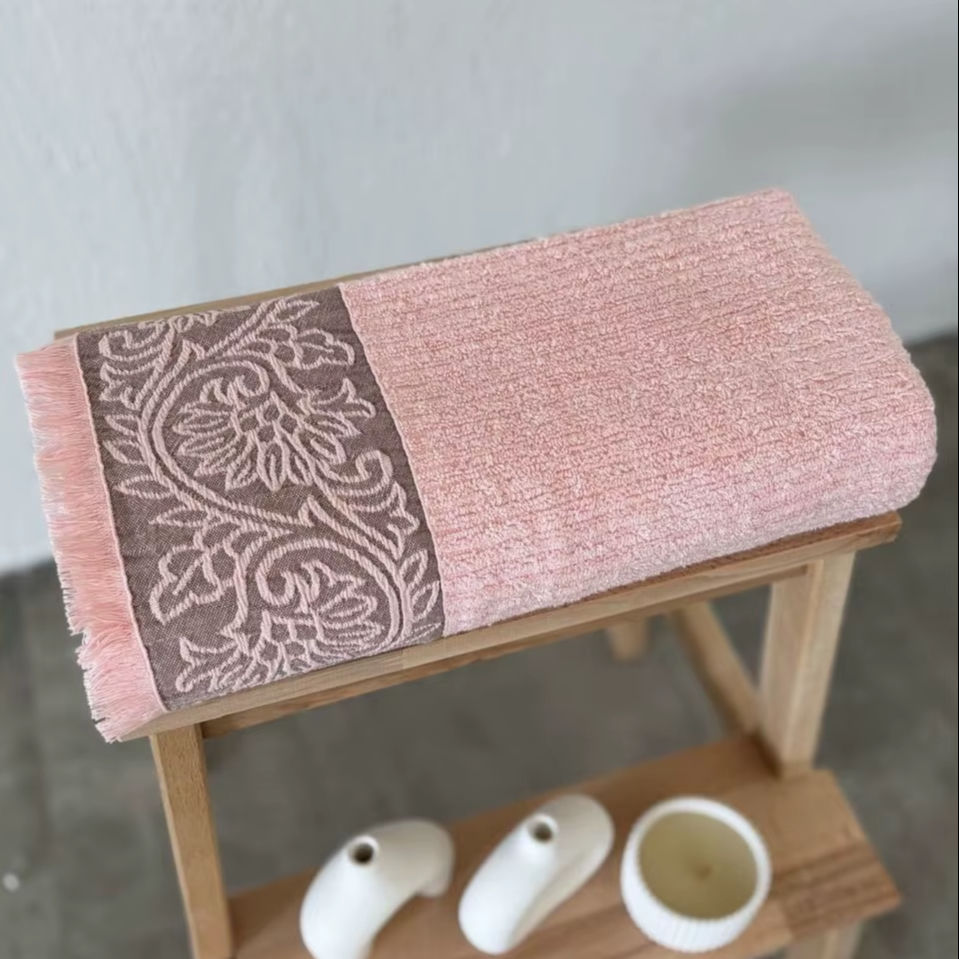 Saumon Pink Bamboo Jacquard Bath Towel 70*140cm 70% Bamboo 30% Cotton Blend Soft Sevim Eco Design Decorative Edge 470GSM