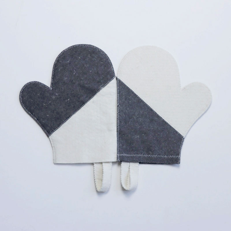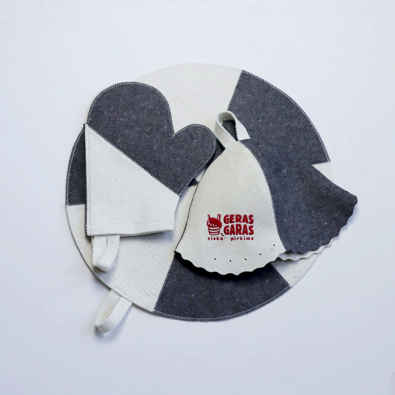 Sauna Set of Grey Wool Felt Accessories Hats Gloves Cushion Embroidery for Four Seasons Russian Banya Steam Room Bath Supplies